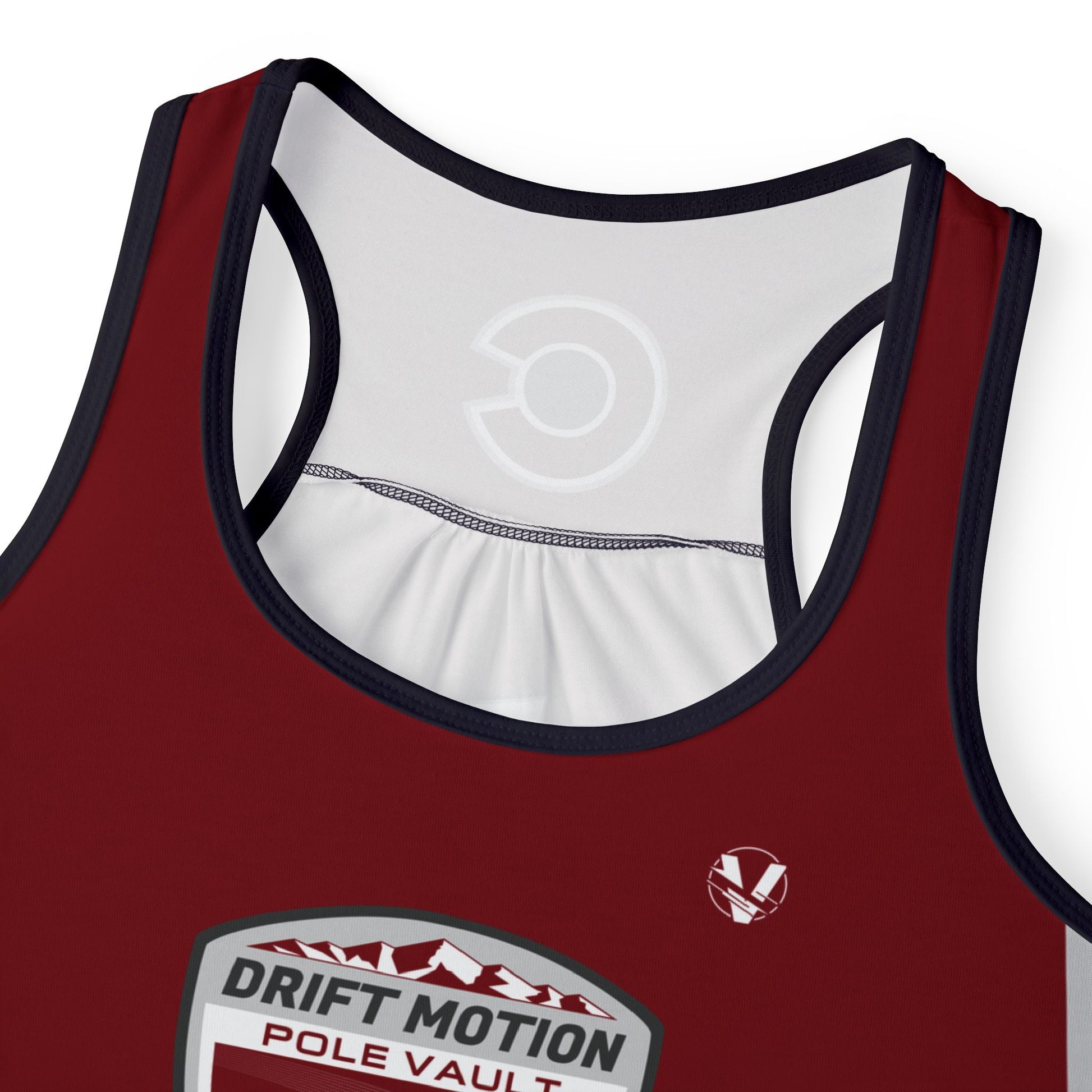 Made for total comfort in peak performance competitions, this Drift Motion Pole Vault uniform women's racerback tank top is made with 94% polyester and 6% spandex jersey knit fabric.
